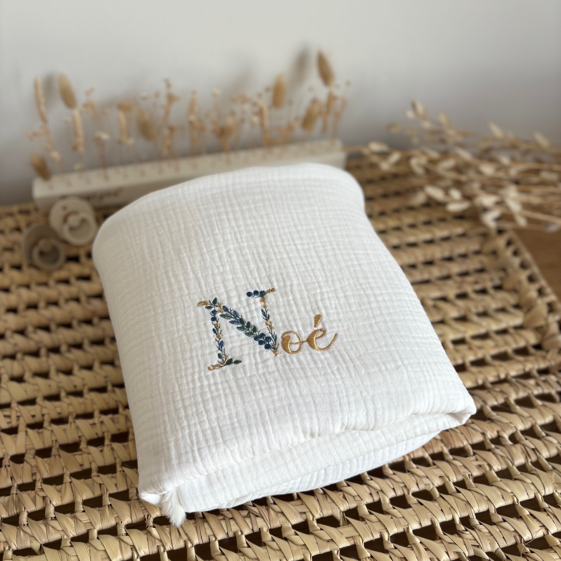 Les Couvertures en triple Gaze de Coton avec Broderie Feuillage
