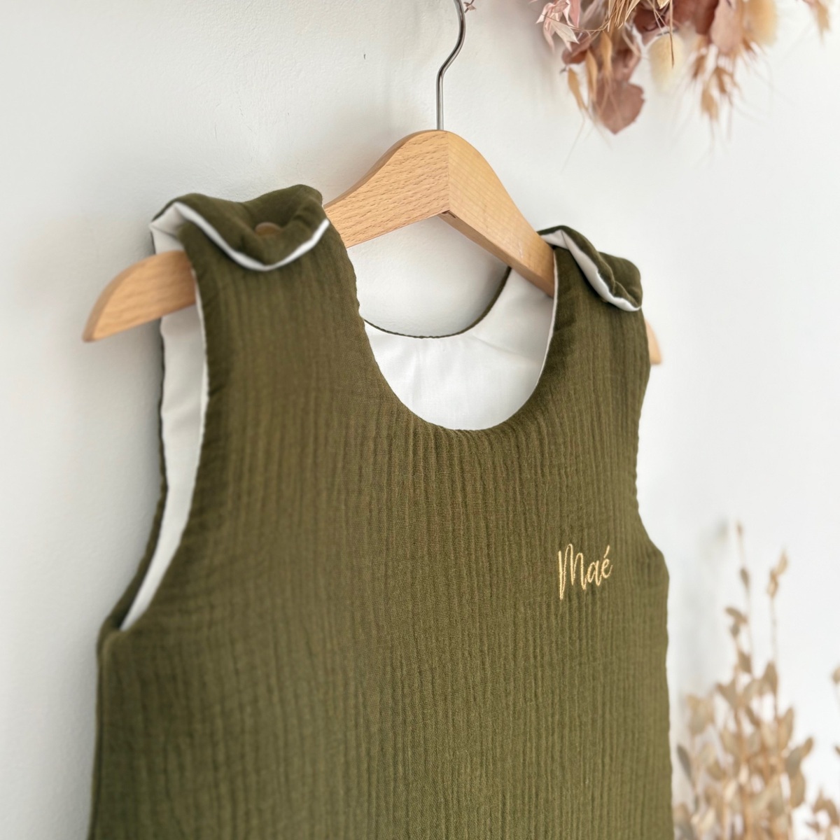 Cette adorable gigoteuse en gaze de coton est disponible dans plusieurs coloris