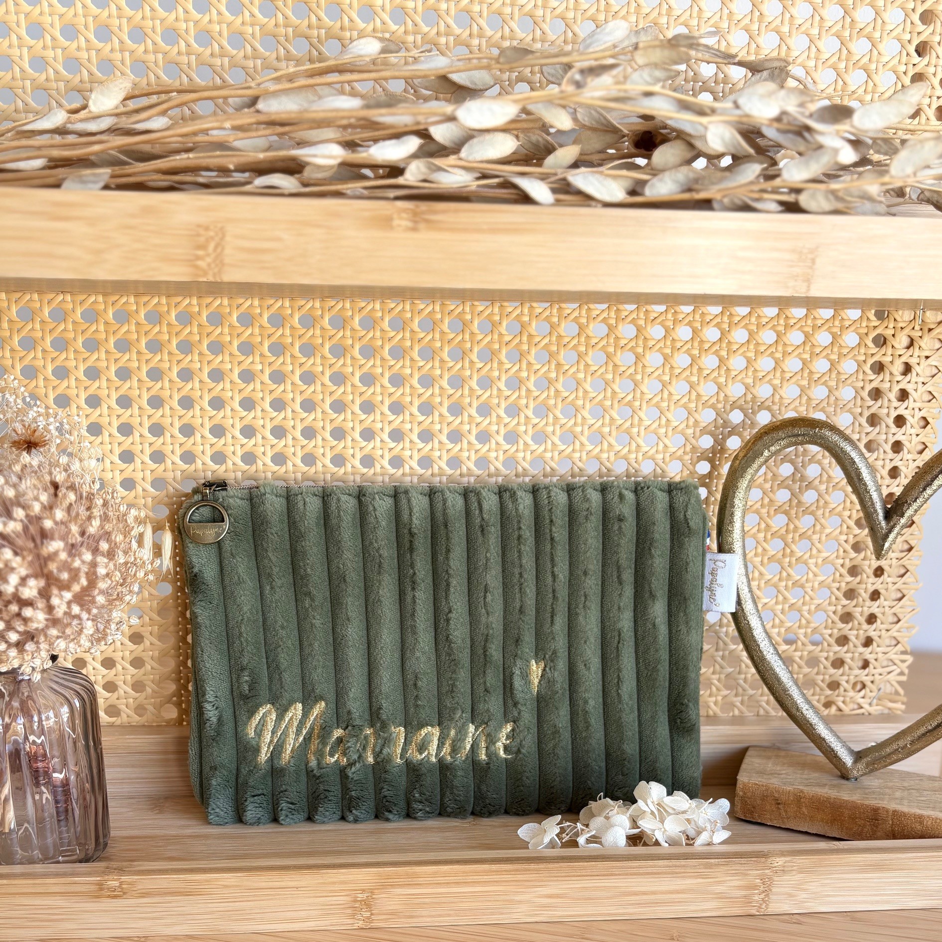L’intérieur de la pochette sera doublée avec un imprimé fleuri assorti