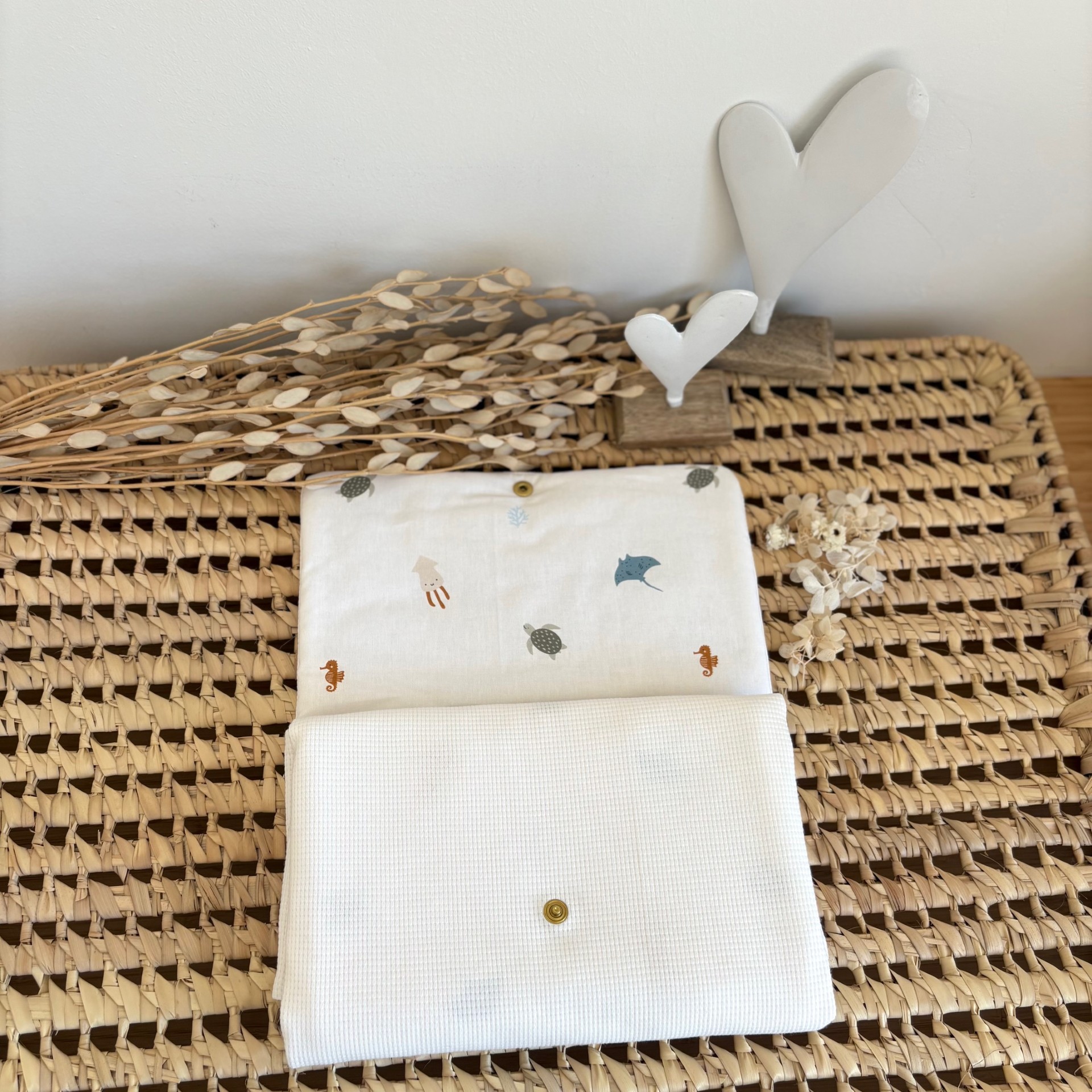 Pratique et élégant, le tapis à langer nomade se glissera facilement dans le sac à langer et vous permettra de changer bébé dans n’importe quelle situation.