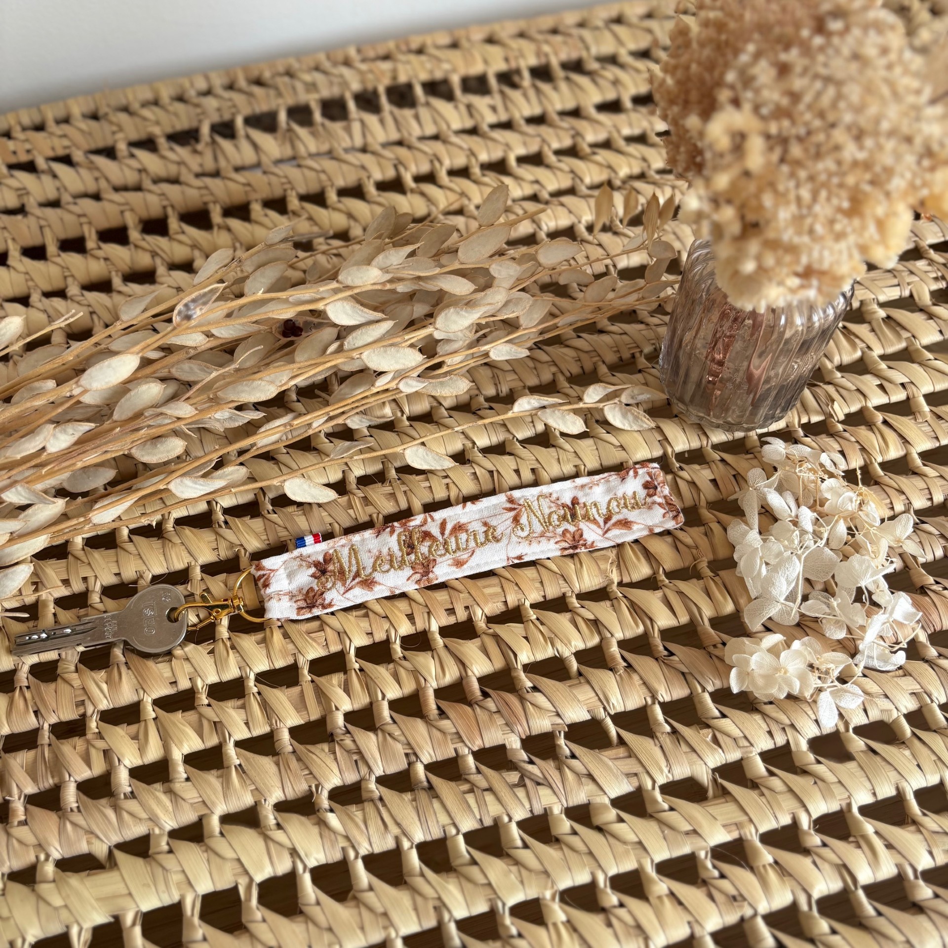 Ajoutez une touche de douceur et d’originalité à votre trousseau avec notre porte-clé en gaze de coton.