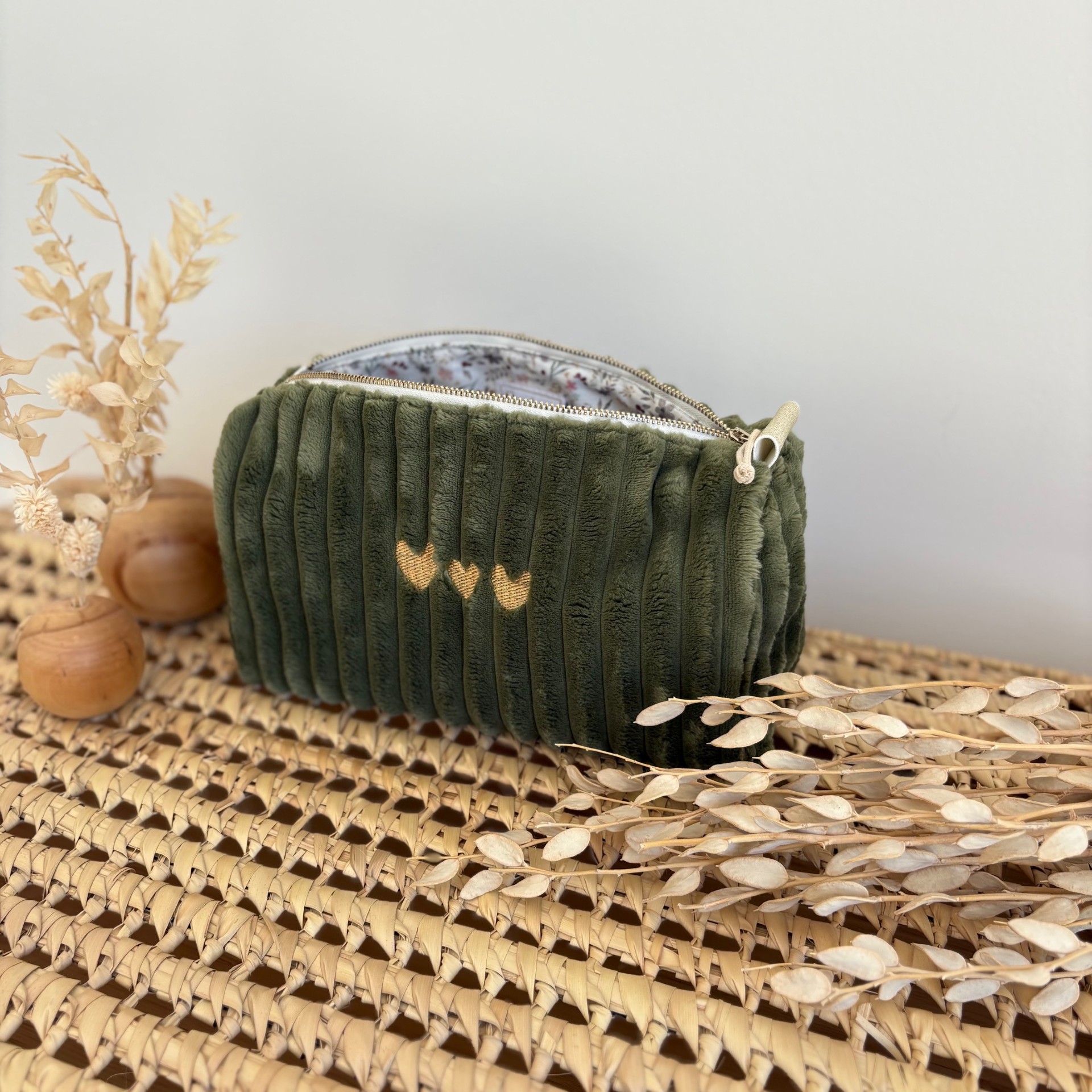 La trousse côtelée est parfaite pour contenir tout le nécessaire de toilette