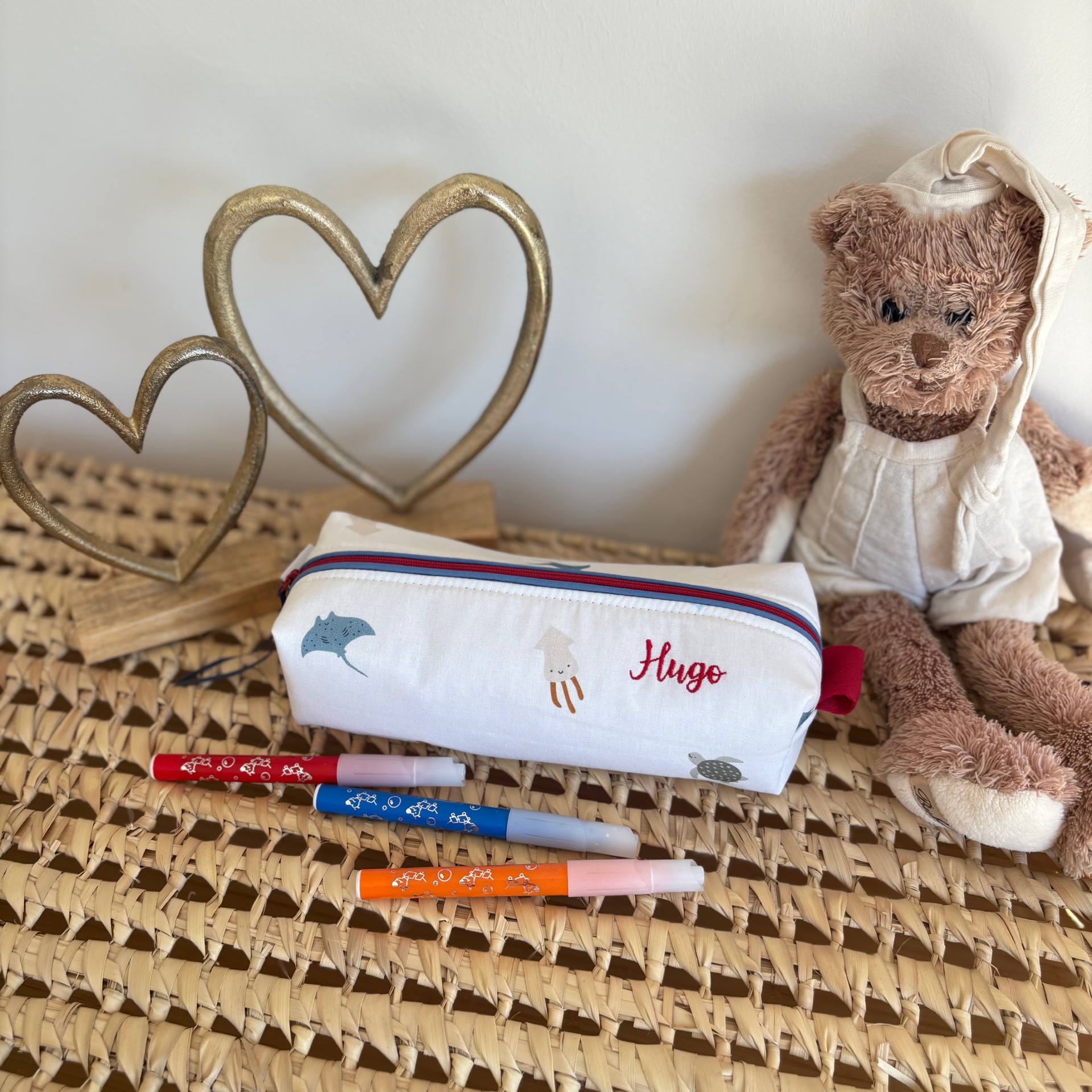 Nos trousses d’école sont doublées d’un tissu imperméable pour pallier aux caprices des feutres ou des stylos plumes.
